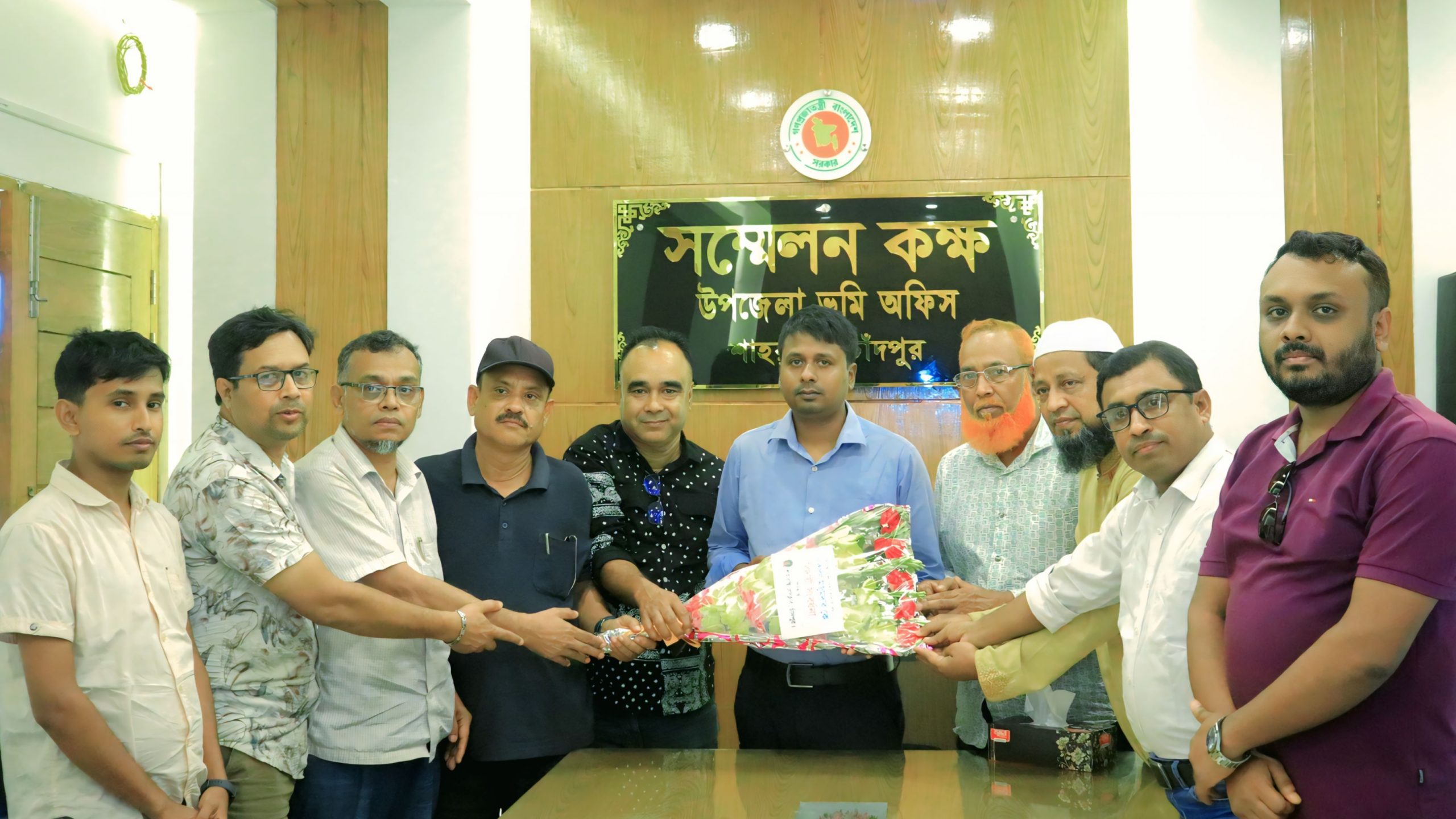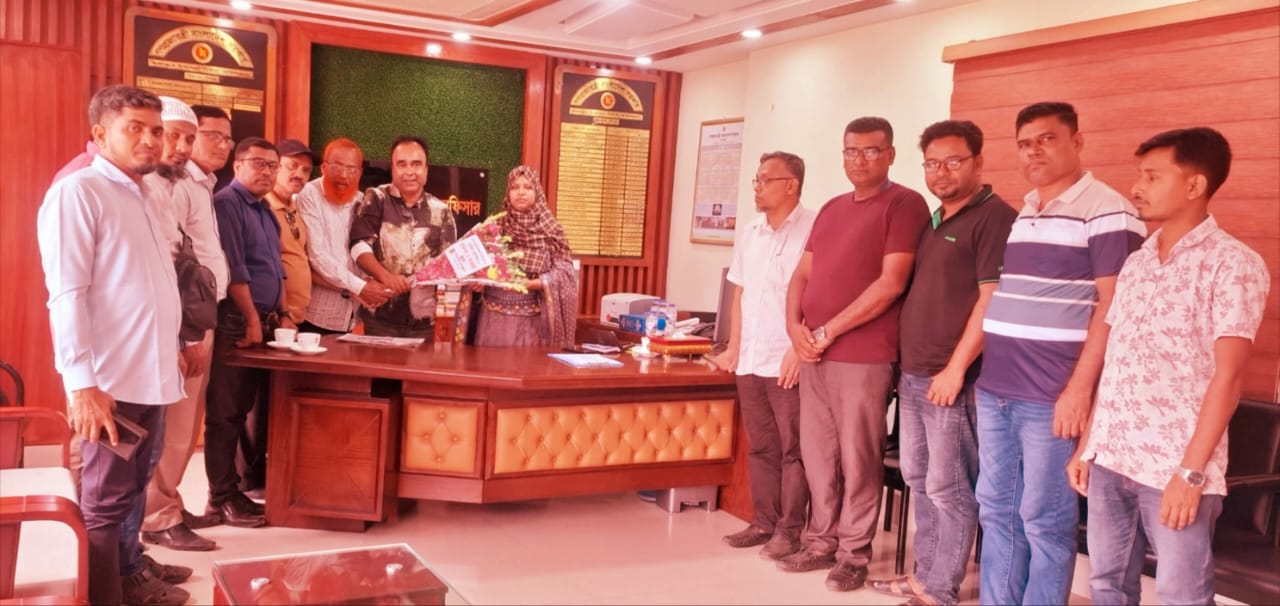 শাহরাস্তি প্রেসক্লাব নেতৃবৃন্দ নবাগত ইউএনও নাজিয়া হোসেনকে ফুল দিয়ে বরণ ও মতবিনিময় করেন