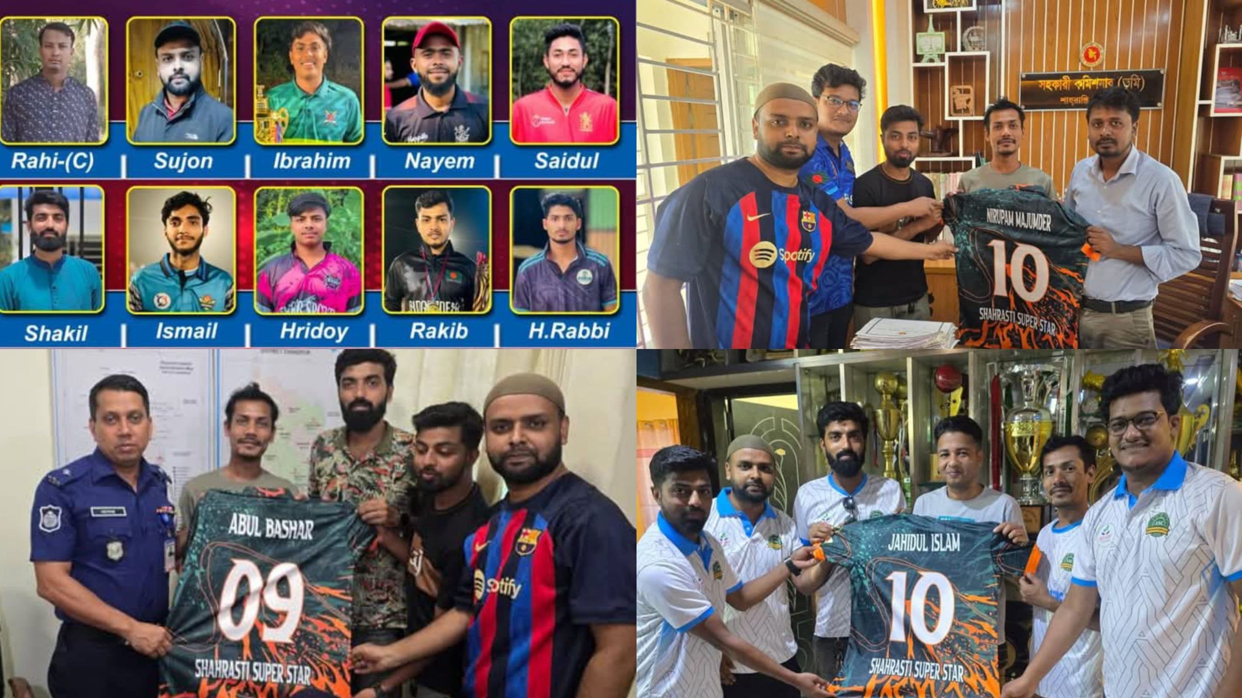 চাঁদপুর মিনি ক্রিকেট প্রিমিয়ার লিগে অংশ নিচ্ছে ‘শাহরাস্তি সুপার স্টার’ উপজেলা ভূমি কর্মকর্তা ও ওসির উপস্থিতিতে জার্সি উন্মোচন